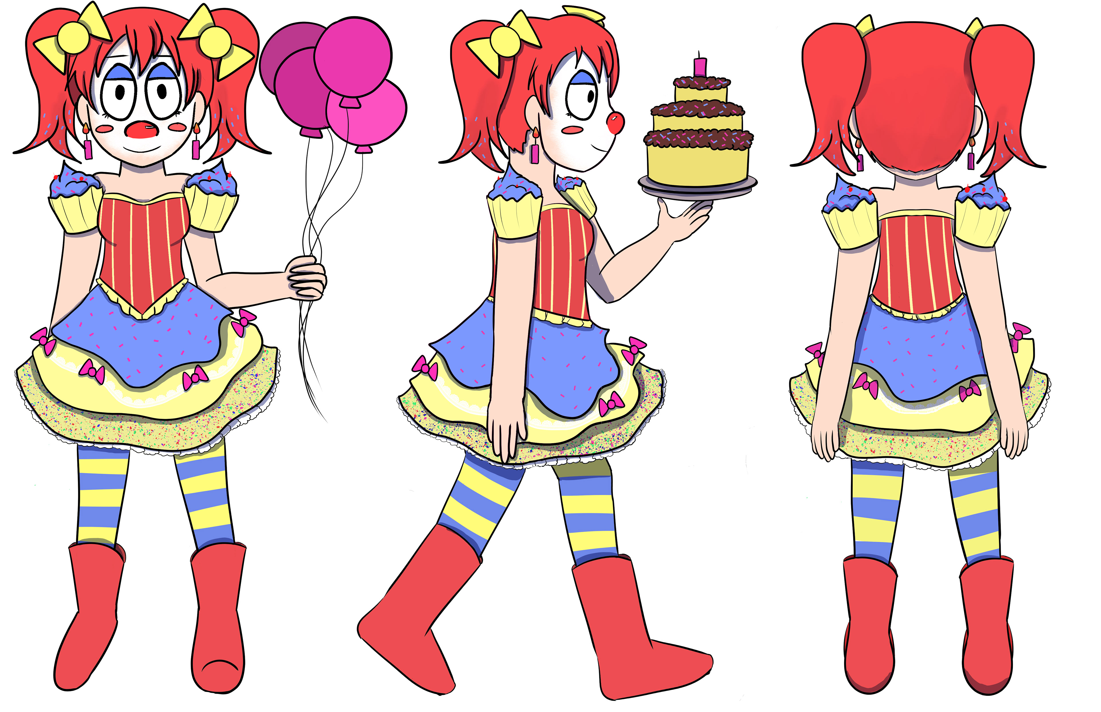 A character I created when combining the words "funny" and "serious." Penelope is an aspiring party clown with a passion for clowning, but is far too serious to become successful.