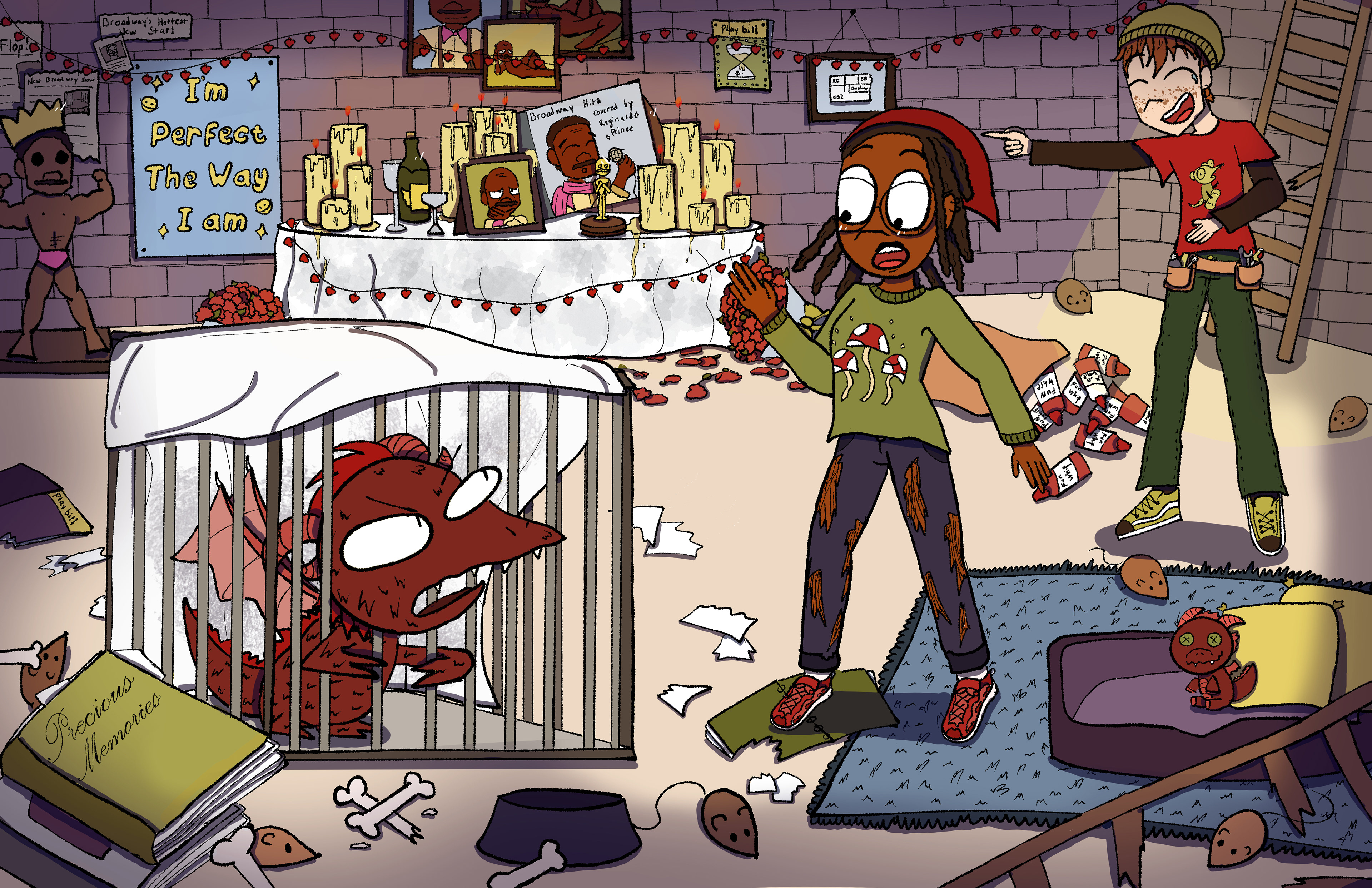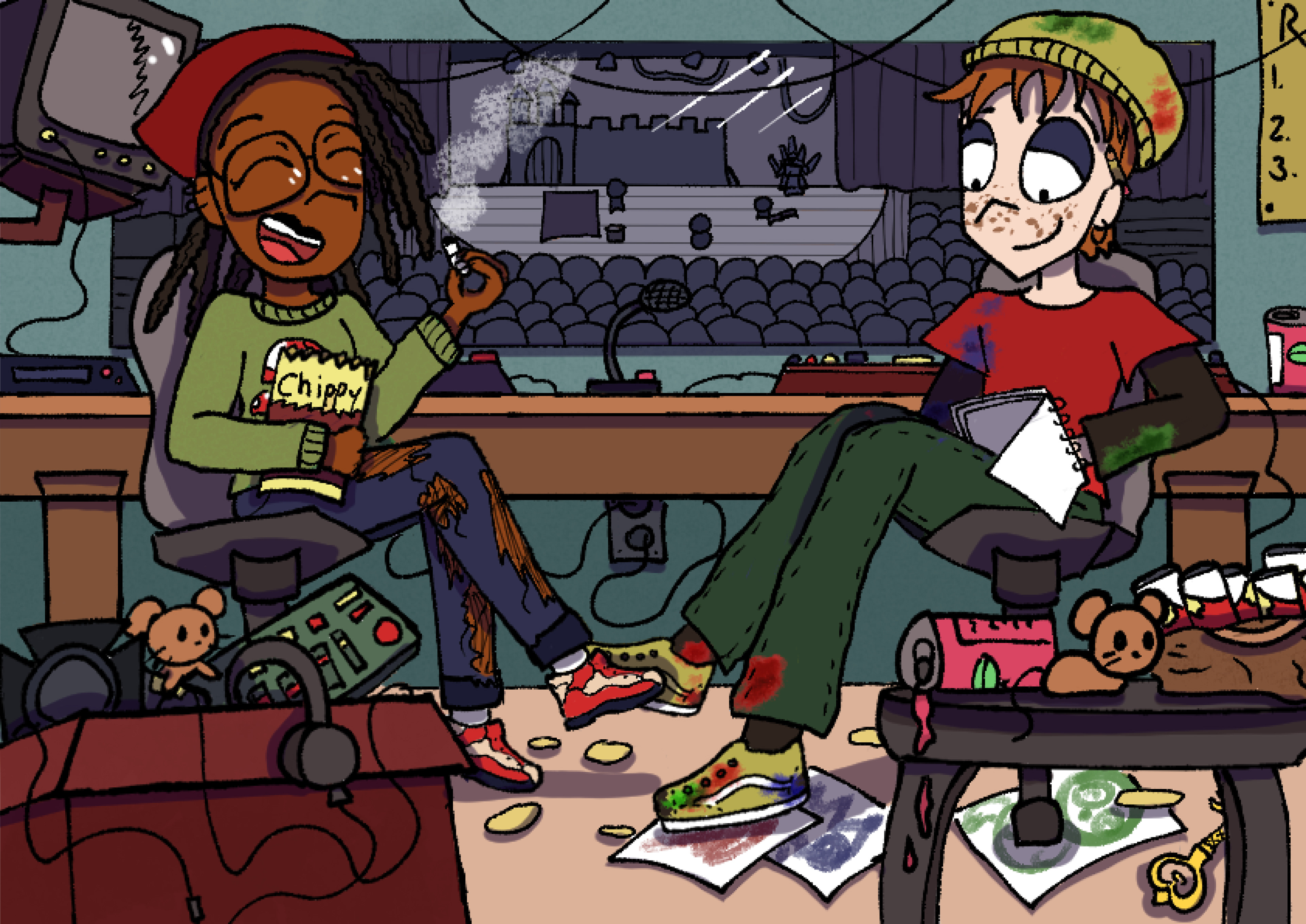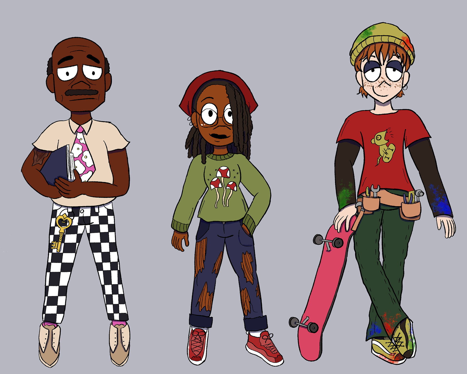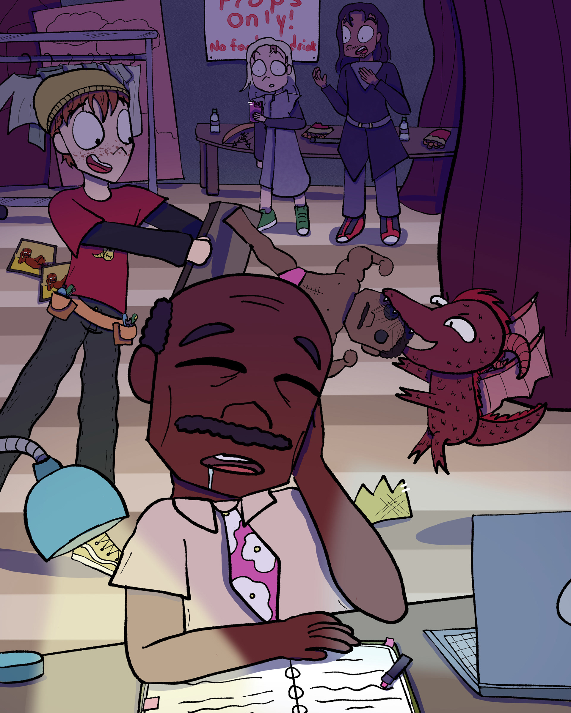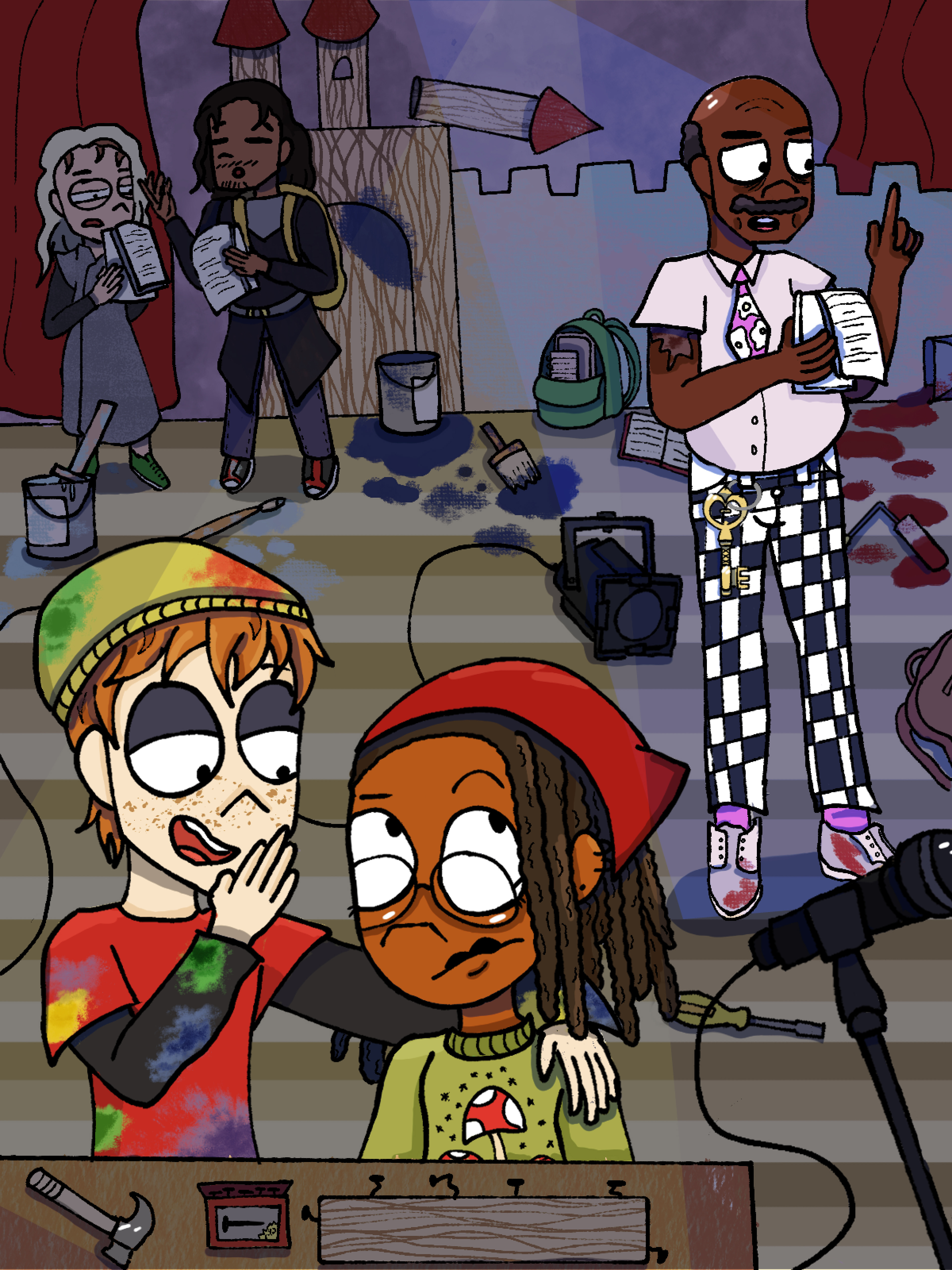 Thesis project where I made pre-production concept art and character designs based on an original screenplay. The story follows two theater tech students slacking off but end up stumbling upon their boring teacher's secret.